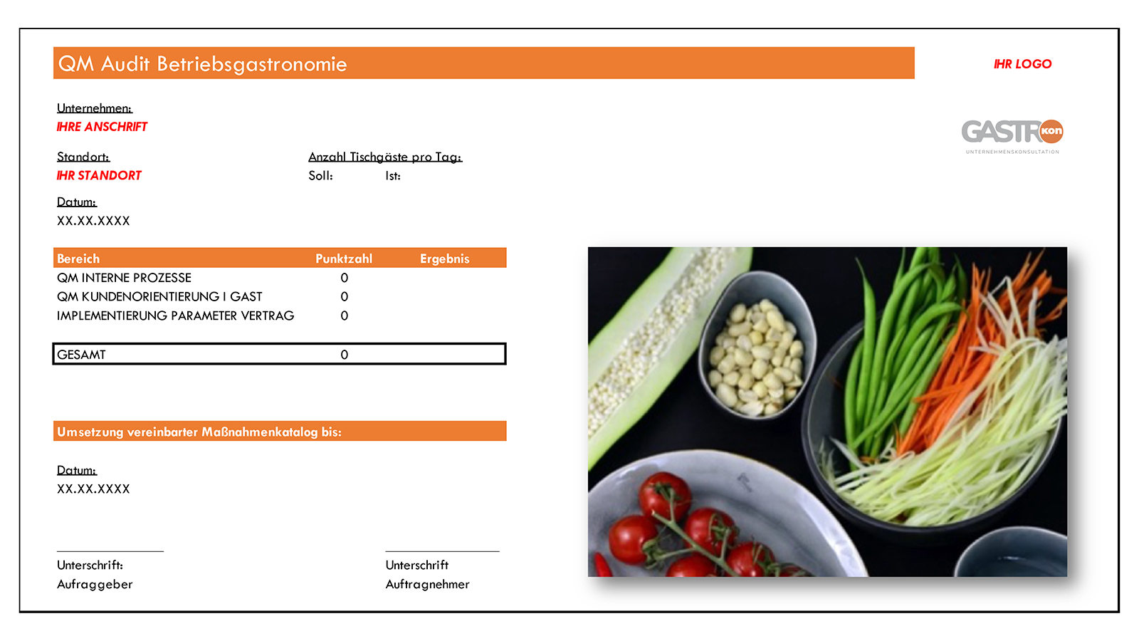 Wollen auch Sie wissen, ob die vereinbarten gastronomischen Kriterien in Qualität und Service entsprechend operativ umgesetzt werden?Möchten Sie sicherstellen, dass sich die heutigen Leistungsparameter Ihrer Gastronomie an den zukünftigen Anforderungen und Prämissen der Post Corona Zeit ausrichten? Gerne unterstützen wir Sie darin, dies über einen transparenten Audit Prozess herauszufinden! Rufen Sie uns an oder schreiben Sie ein Email für Ihr ganz persönliches Angebot.